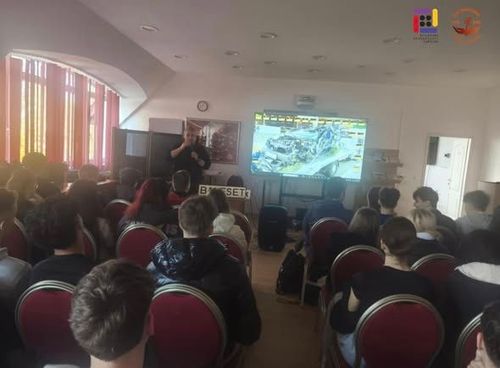 Pintér József r. főtörzszászlós, a Veszprémi Rendőrkapitányság balesethelyszínelőjének látványos és élvezetes balesetmegelőzi előadását nézhették meg iskolánk 9. és 10. évfolyamos technikumi tanulói.